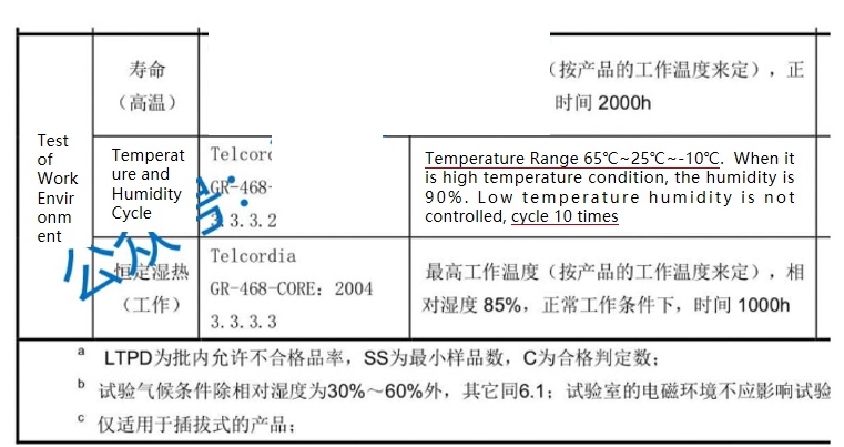 2. Konverter fotolistrik/modul optik: Standar uji perubahan suhu cepat yang umum adalah GB/T 2423.22-2012, GR-468-CORE, EIA/TIA-455-14 dan IEEE 802.3. Standar-standar ini terutama mencakup metode pengujian dan langkah-langkah implementasi khusus konverter fotolistrik/modul optik, yang dapat memastikan kinerja dan keandalan produk di lingkungan suhu yang berbeda. Di antara semuanya, standar GR-468-CORE secara khusus ditujukan untuk persyaratan keandalan konverter optik dan modul optik, termasuk uji siklus suhu, uji panas basah dan uji lingkungan lainnya, yang mengharuskan konverter optik dan modul optik untuk mempertahankan kinerja yang stabil dan andal dalam penggunaan jangka panjang.