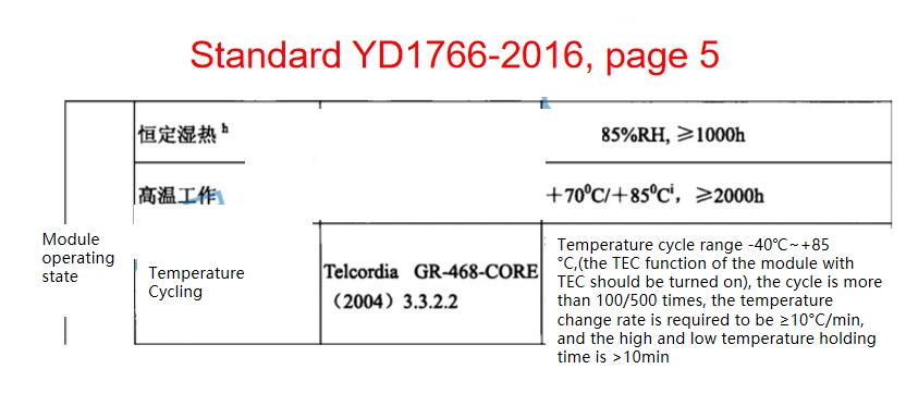 Untuk modul optik maju 5G, pendapat kami adalah jumlah siklusnya adalah 500, dan suhunya diatur pada -40 °C ~85 °C