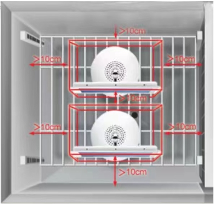Spesimen termogenik harus ditempatkan di tengah lemari uji sejauh mungkin, dan jarak antara spesimen dan dinding lemari, spesimen dan spesimen harus lebih besar dari 10 cm, dan rasio volume lemari suhu dan spesimen harus lebih besar dari 5:1.