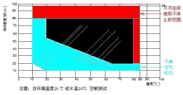 Diagram rentang kendali suhu dan kelembaban (suhu sekitar 25℃, uji tanpa beban)