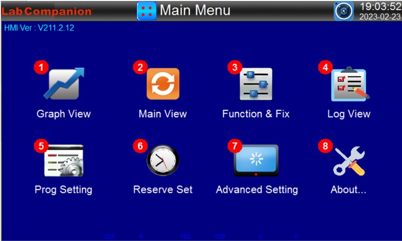 ① | Tampilan Grafik | Pindah ke tampilan kurva program, kurva riwayat, dan layar pengaturan. |