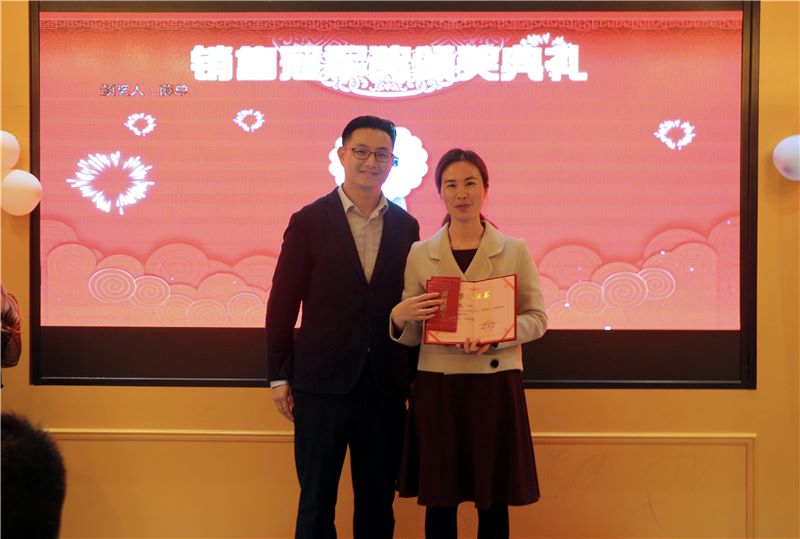 Tn. Xue Zeming, Manajer Umum perusahaan, menyerahkan Penghargaan Juara Penjualan kepada staf!